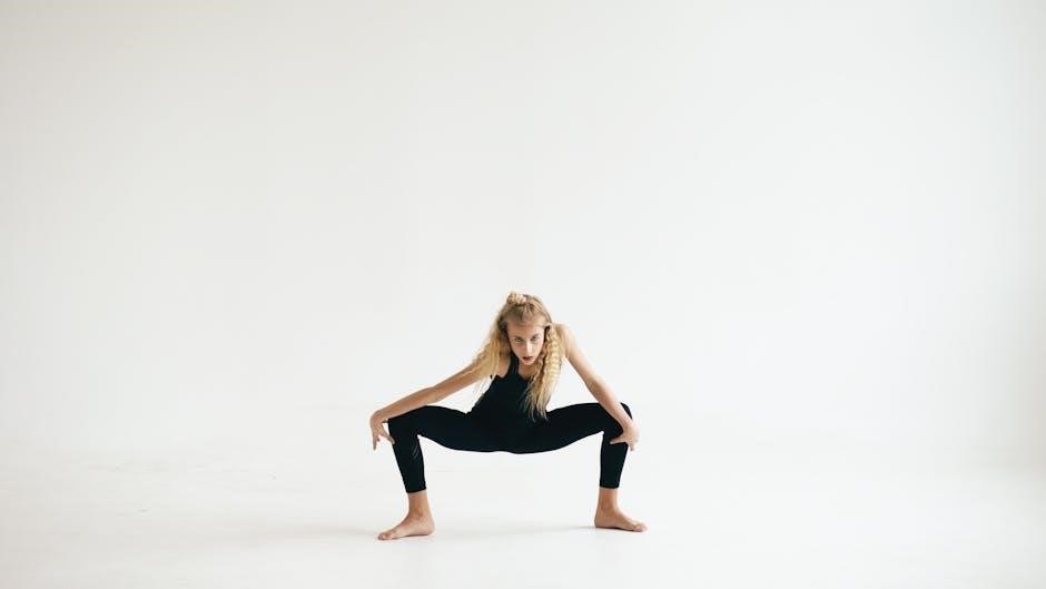 The Deep Squat Hold is a powerful stretch that targets the hip flexors, glutes, and ankles simultaneously, promoting overall lower body mobility․ Begin by standing with your feet slightly wider than shoulder-width apart, toes pointed slightly outward․